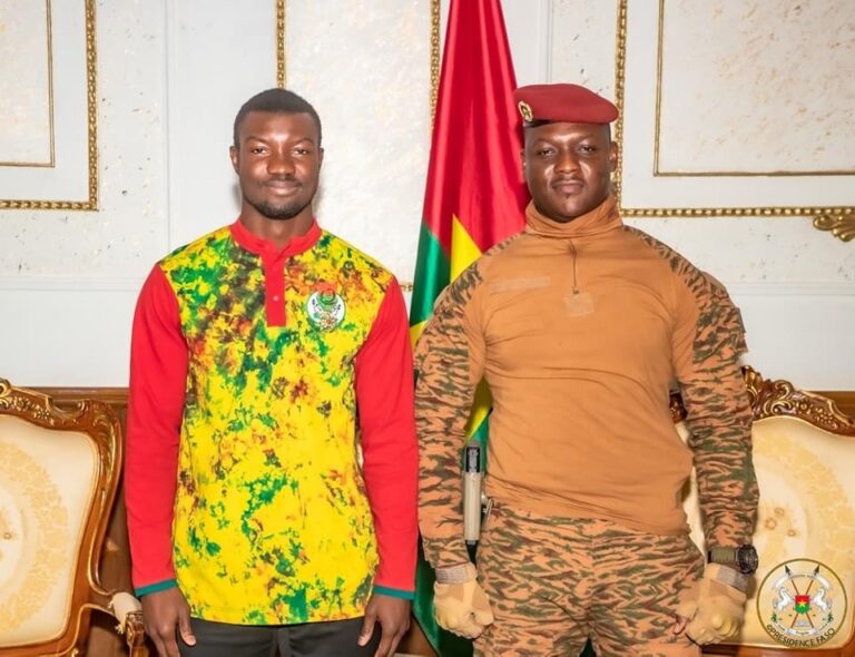 L’athlète Hugues Fabrice ZANGO, champion du monde du triple-saut a été élevé, ce vendredi dans la matinée, au rang d’Officier de l’Ordre de l’Étalon. C’était à l’occasion d’une audience avec le Président de la Transition, Chef de l’État, le Capitaine Ibrahim TRAORE.