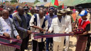 Coupure de ruban par les autorités marquant l’inauguration de la salle polyvalente