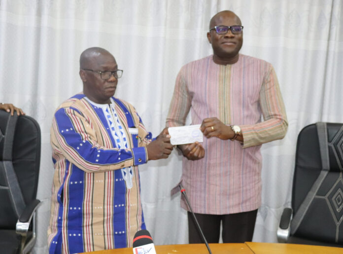 Cette somme est issue des contributions volontaires faites par les agents du ministère et les partenaires de celui-ci que sont les bureaux d’études, les entreprises et les syndicats. C’est au cours d’une cérémonie que le ministre des infrastructures et du désenclavement, Adama Luc Sorgho, a remis le 10 juin 2024 à Ouagadougou, à son homologue des Finances, Aboubakar Nacanabo, la quittance de versement des fonds au Trésor public.