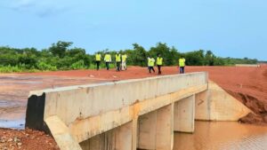 Au pont de Hèrèdougou dont la construction est financée par le fonds routier, les administrateurs se sont imprégnés de l’état d’avancement des travaux