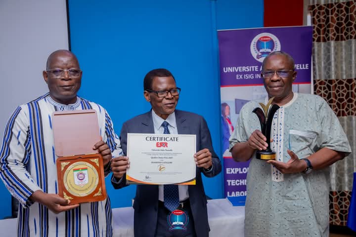 C’est dans une atmosphère de gaieté que s’est déroulée la présentation de la double distinction qui symbolise la culture de la qualité et de l’excellence au sein de l’université Aube nouvelle. Si la distinction nationale émane de l’académie Georges Namoano, il convient de préciser que celle internationale a été décernée par la Société européenne pour la recherche de la qualité (ESQR), lors de son congrès international à Stockholm en Suède. La Société européenne pour la recherche de la qualité qui a son siège en Suisse, est une institution réputée pour son engagement à promouvoir la culture de la qualité sur le plan mondial.